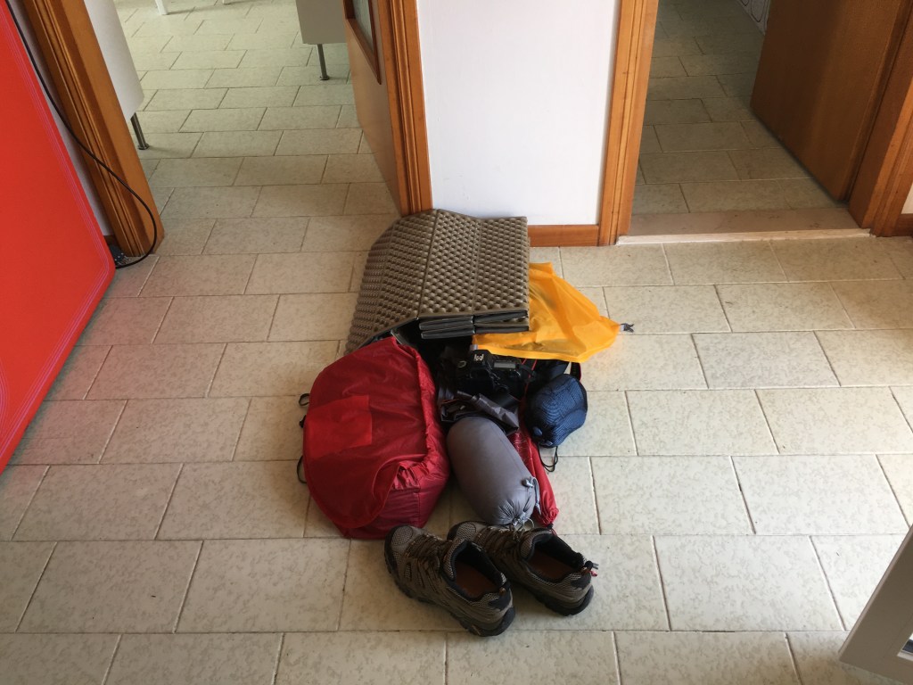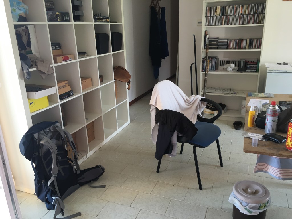 4:30pm now. Carlo had brought me to the surroundings and a little hill with another vehicle. We chatted a lot, from AD 580 the invasion of Lombardy to Italy to the news of the Britain most recently. He said the citizens who agreed with the departure of their country from Europe are bullshit. He handed few very precise and large maps for discovering the backcountry nearby own my own. Surprisingly, he is also enthusiastic about camping, mountaineering and so on. Learned some skill of orientation by map and the sun. He also asked me to stay in his house whatever I like for discovering his hometown. I agreed and so we went back “home” and took a homecooked Espresso with sugar with him. He left the key and a small bag for me to start the first hike alone. So I’m now on the route on La Frate where he picked for me, with his given map, hiking alone.