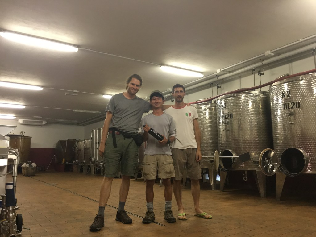 I reached to the brewery his friend Fulvio’s house after 29 kilometers journey. He was kind of impressive and appreciated me as a backpacker doing all these by reading map and orientating myself in this unknown place. Fulvio gave me a bottle of 2005 Merlot Venezia Giulia red wine as a gift. After tasting the amazing white and red wine and taking a photo, Carlo drove me back home and left. While I’m writing this diary, Carlo is coming and he’d bring me something to eat. “Put the water on the fire”, and so I do.