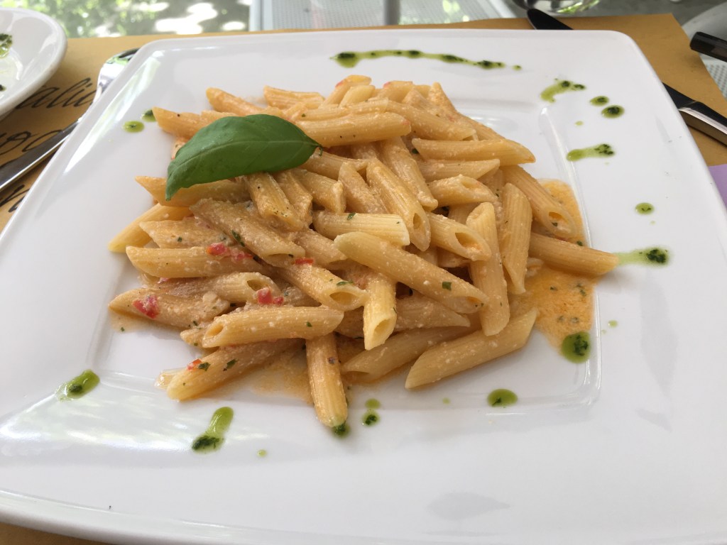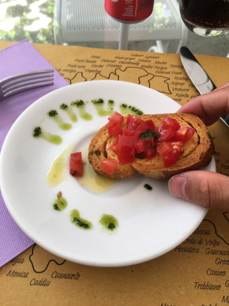 1:40pm. Just ate “Sicily Dominissini” at Antica Trattoria Dominissini. Tomatoes toast as starter, crispy toast with olive oil covered with tomato cubes tasted perfectly match. For Sicily, it’s pasta, with sauces filled inside every strip of pasta it bursts when you chew, wonderful. South Italy has the world’s best cuisines, though I’m in the north, tasting Sicily cuisines is the best decision I’d made, thank you for the suggestion Carlo.