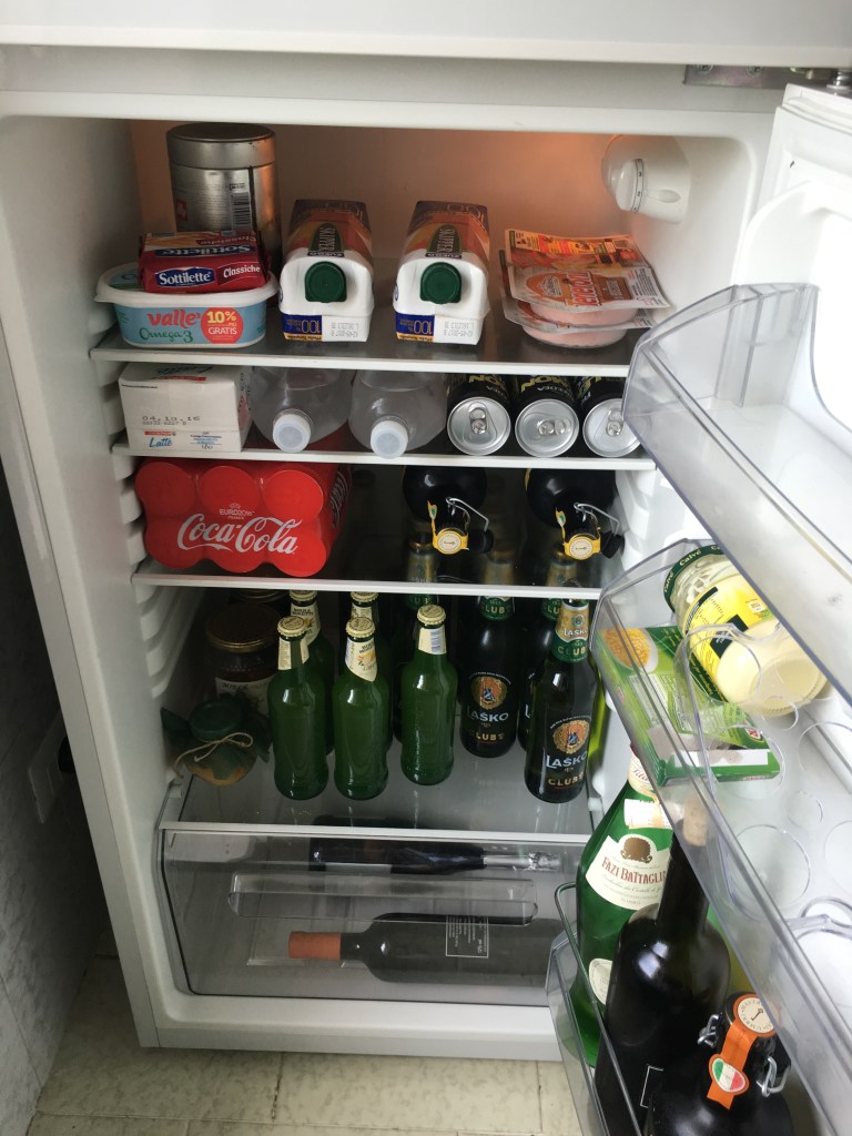 Spent almost €40 buying stuff in Despar, restocked the fridge, coke, beers, juices, ice-cream, things to cook, etc. Carried almost 30 kilograms of stuff walking from the supermarket to home under hot sun. That 700 meters was like 7 kilometers and much harder than all the trails I’d walked. I close my eyes, sitting and listening to the music of relaxation.