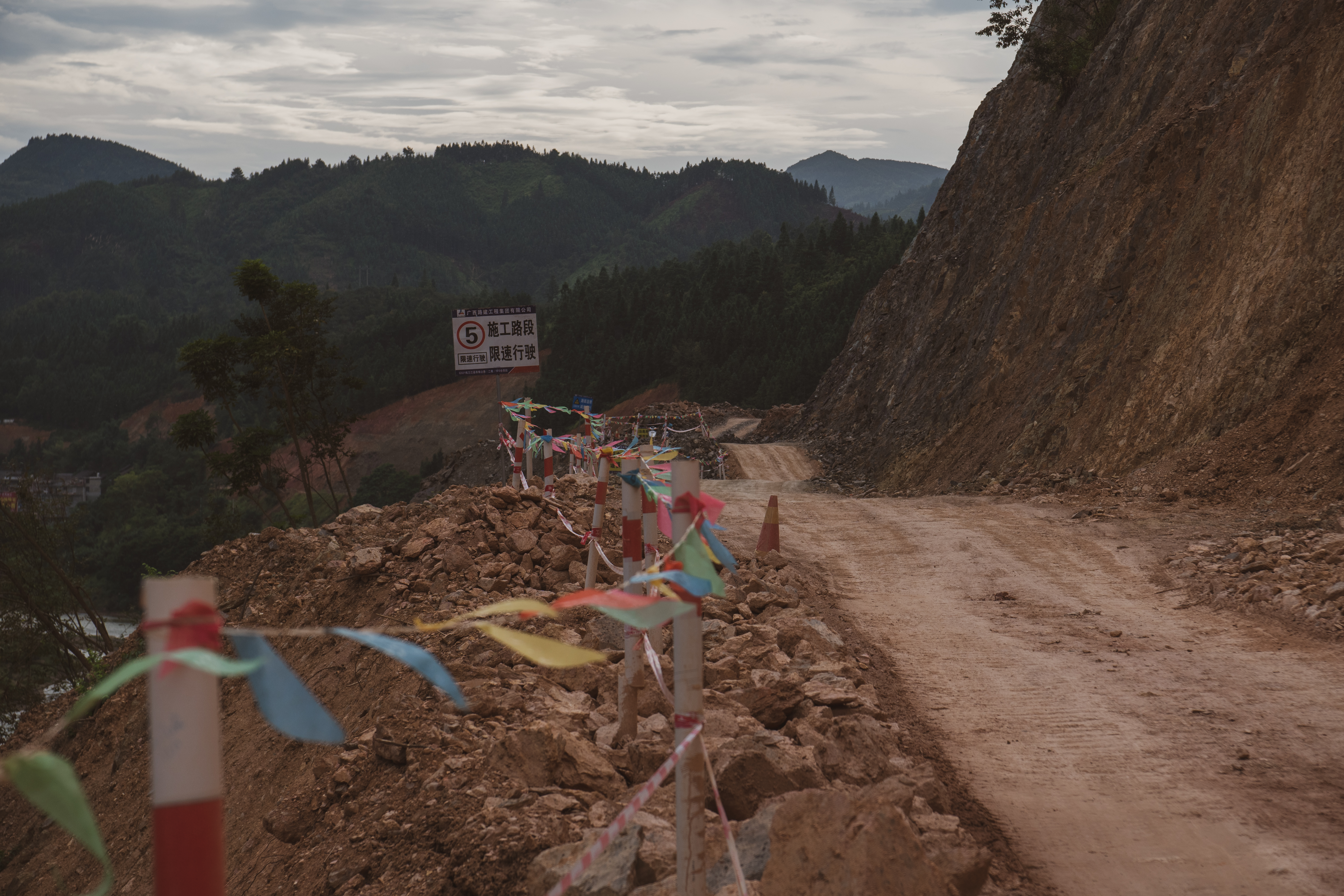 我和阿勇坐在地上,雙腿凌空晾在路邊,聊了好一會。前方西邊遠處是個看起來不怎麼高的山頭,我猜後面或許就是貴定縣了。