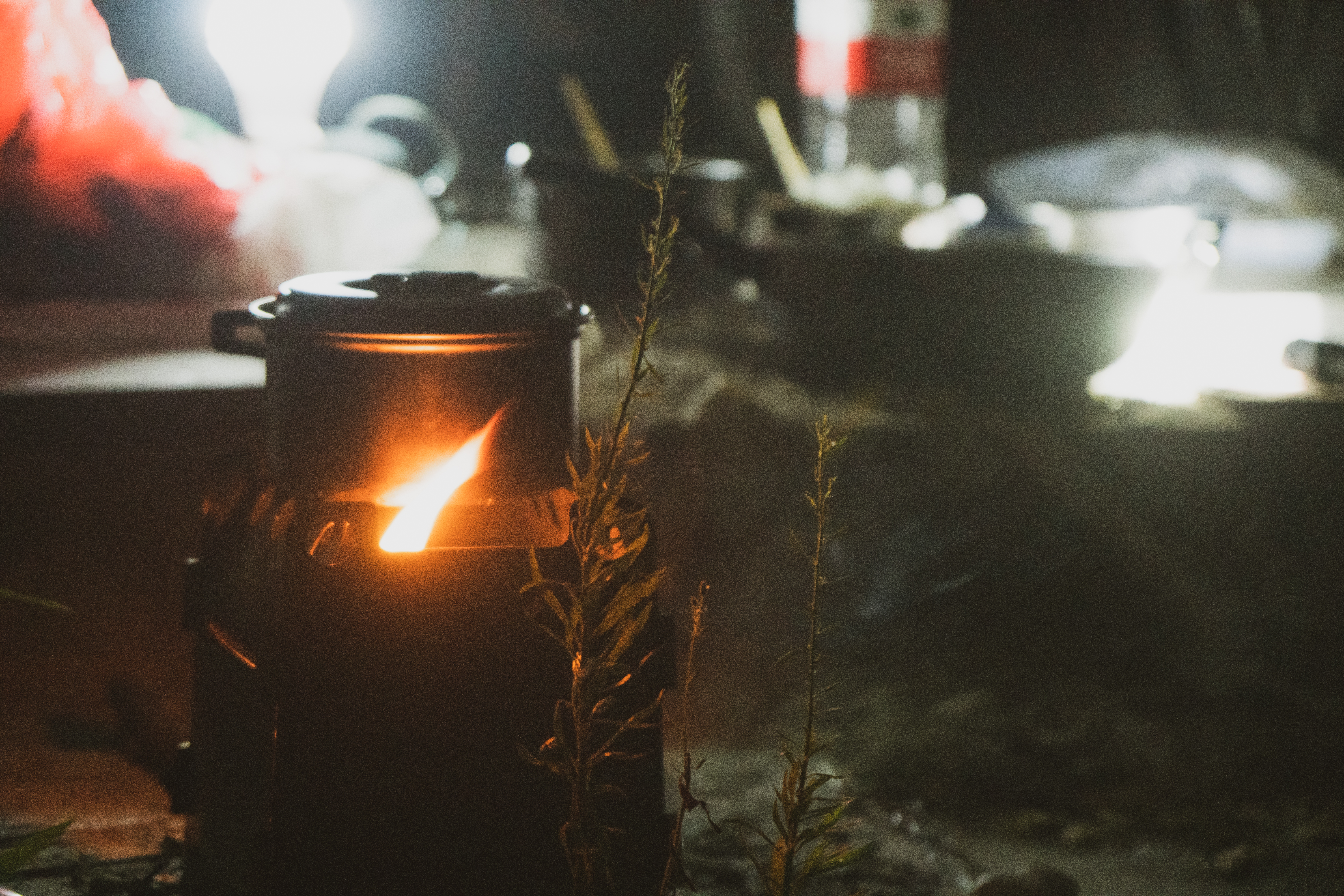 這個噴了迷彩顏色的組裝三輪車體積不小,起碼有幾百斤。阿勇掀開扶把中間的鐵門,遞了幾包壓縮乾糧給我。裡面幾乎是他所有的重型行裝﹕自立帳篷、睡袋睡墊、重型爐具、柴米油鹽⋯⋯還有兩個比手掌還要大的移動電源,車子上面還架著個另一部專門直播的電話。