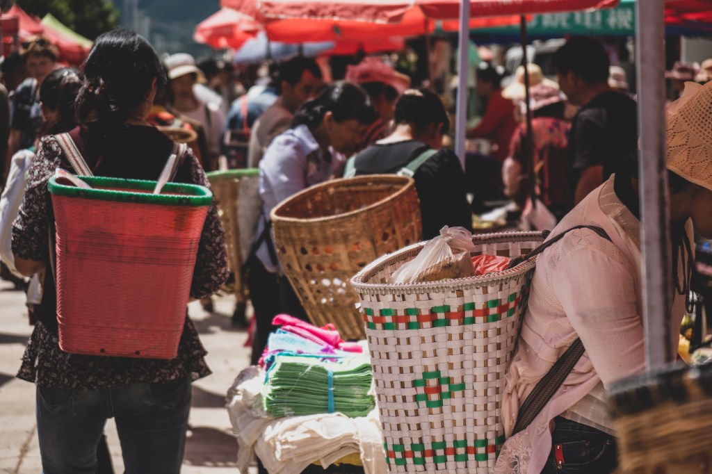 我騎著單車,經過每逢星期五才有的趕集市。當地人大概就這樣揹著竹籮,購買日用品、茶鹽油糧、工具雜貨。