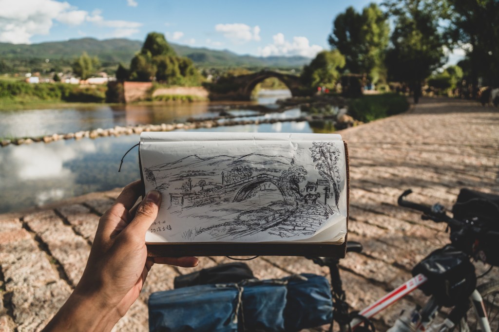 我騎著單車回到古鎮,在那個清澈綿長的黑惠江前面坐著,用紙筆刻劃眼前不遠處古舊的玉津橋。此刻我在想,嚮往自由的人應該喜歡寂寞,唯有獨自一人才能活出自己。