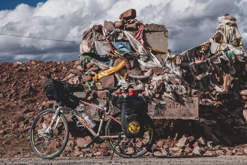 即使路上的喇嘛們的加油鼓勵,再加上不下十數次休息拉伸,我還是敵不過兩處腳患的痛楚。我在海拔四千多米的拉烏山上破了永不推車的首例。