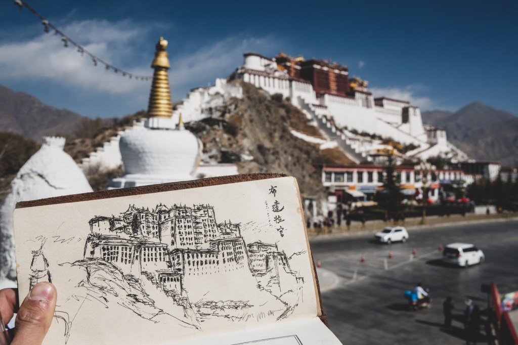 我重拾旅程初期時對美景,或者任何可以讓我寄託情感的事物的熱衷。無論是一頭在旁散步的耗牛,一塊遺在拉薩河岸邊的小石頭,又或是一碗在原始藏式麵館的餃子。經過達孜區後看見車水馬龍、架空道路縱橫交錯,真很久未曾有過如此繁榮的感覺-上一次應該是在雲南昆明市的時候吧。